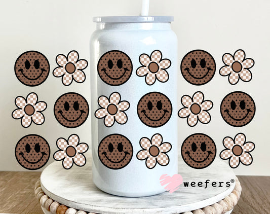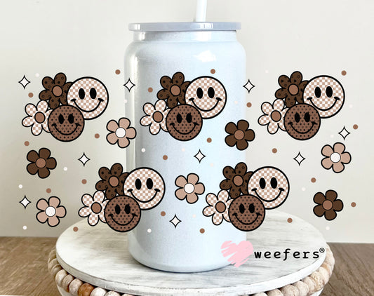 Brown Smile Faces Neutral Flowers UV DTF Cup Wrap - Weefers Exclusive Wrap