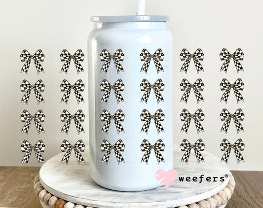 Black and Cream Checkered Bows Elements UV DTF Cup Wrap - Weefers Exclusive Wrap