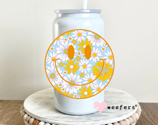 Blue Yellow Floral Smile Face UV DTF Decal