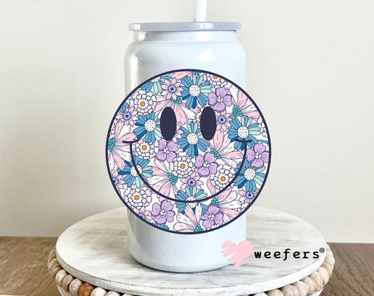 Blue Purple Floral Smile Face UV DTF Decal