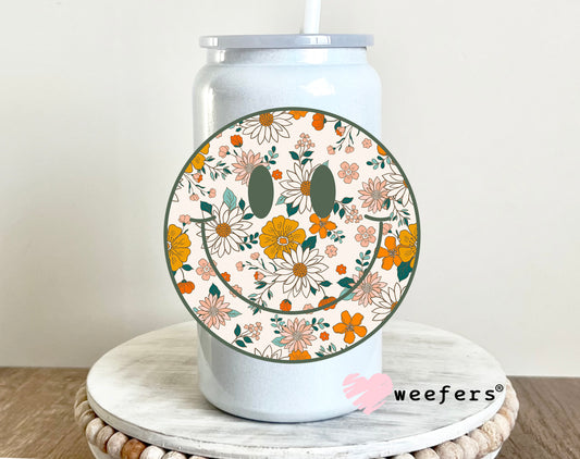 Green Orange Floral Smile Face UV DTF Decal