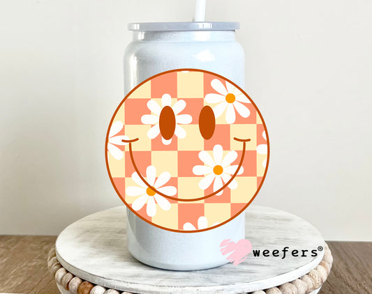 Yellow and Coral Checkered Flower Smile Face UV DTF Decal