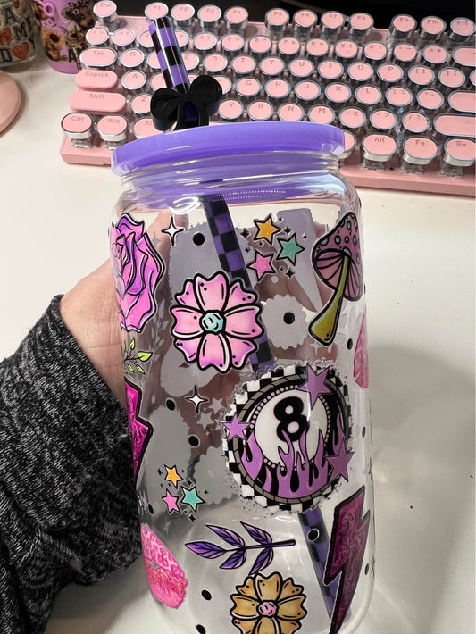 Purple Eight Ball Lightening Bolts and Roses UV DTF Cup Wrap - Weefers Exclusive Wrap