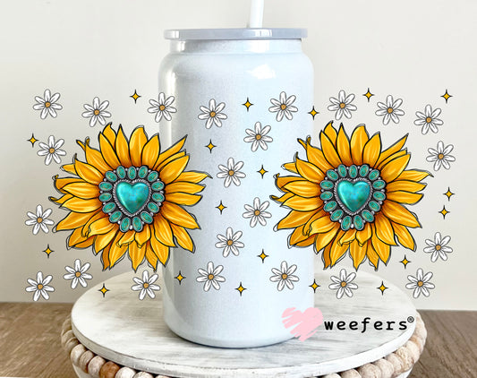 Yellow Sunflower Turquoise Jewels UV DTF Cup Wrap - WEEFERS EXCLUSIVE WRAP