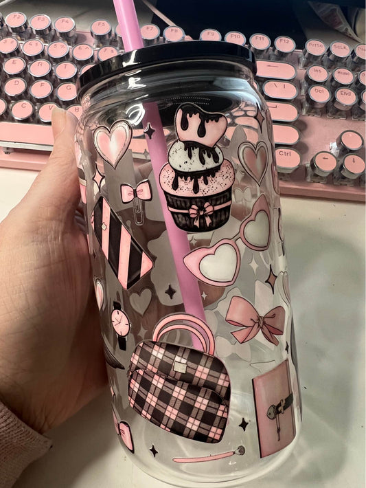 Pink and Grey Planner Girl UV DTF Cup Wrap - Exclusive WEEFERS WRAP