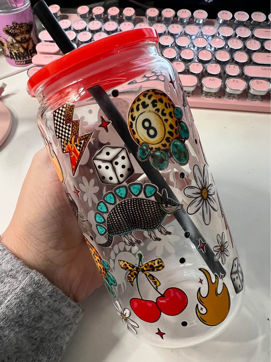 Leopard Red Cherry Eight Ball UV DTF Cup Wrap - Exclusive WEEFERS WRAP