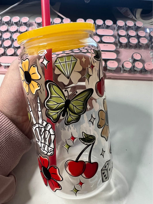 Skully Peace Sign Eight Ball UV DTF Cup Wrap - Exclusive WEEFERS WRAP