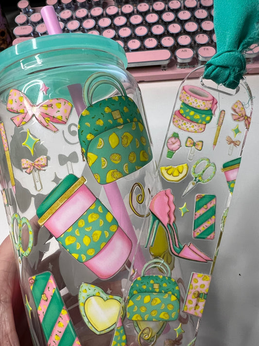 Lemon Pink and Green Girl Planner UV DTF Cup Wrap - Exclusive WEEFERS WRAP