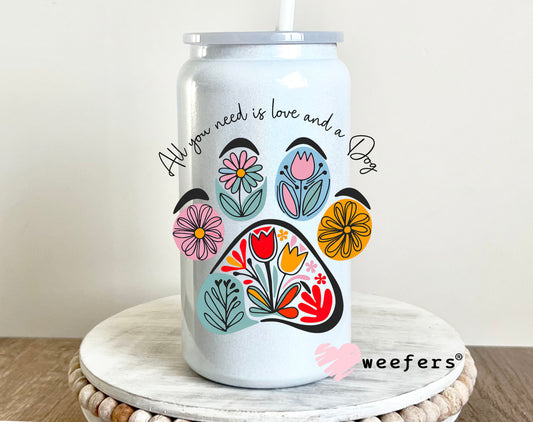 All you Need is Love and a Dog Flower Tulip Paw UV DTF Decal