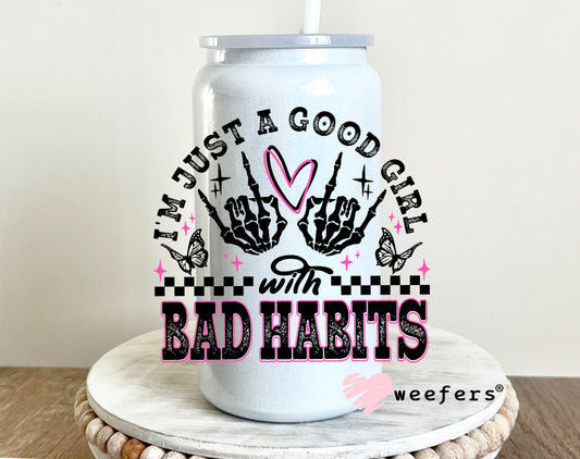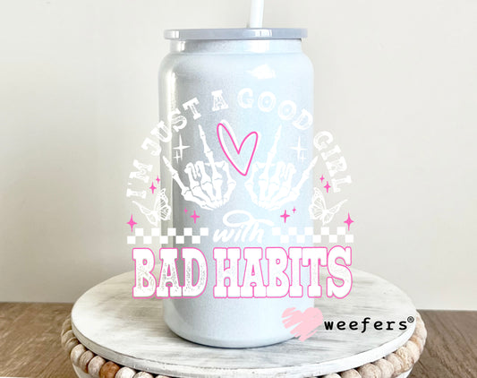 I'm Just a Good Girl with Bad Habits White Pink UV DTF Decal
