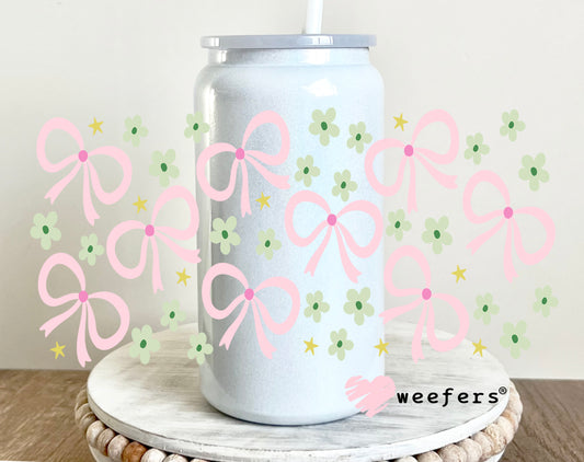 Pink Bows Mint Green Flowers UV DTF Cup Wrap