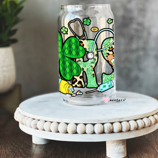 St Patrick's Day - Nurse Shamrocks Libbey Glass Can Wrap UV DTF Sublimation Transfers