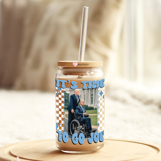It's Time To Go Joe Blue 16oz Libbey Glass Can UV DTF or Sublimation Wrap Decal Transfer