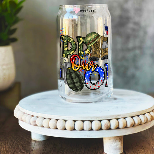 Support Our Troops 16oz Libbey Glass Can UV DTF or Sublimation Decal Transfer