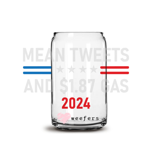 Mean Tweets and 1.87 Gas 2024 16oz Libbey Glass Can UV DTF or Sublimation Wrap - Decal