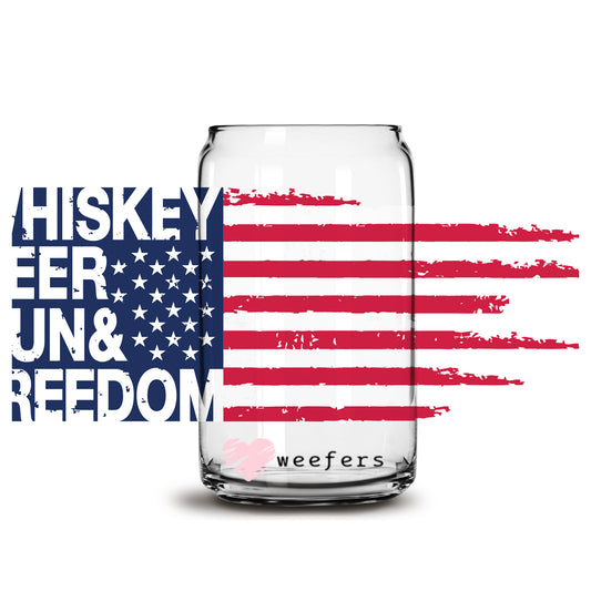Whiskey Beer Freedom America 16oz Libbey Glass Can UV DTF or Sublimation Cup Wrap - Decal Transfer