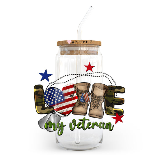 Love My Veteran 20oz Libbey Glass Can UV DTF or Sublimation Wrap - Decal Transfer