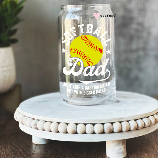 Softball Dad White Text 16oz Libbey Glass Can UV DTF or Sublimation Cup Wrap - Decal Transfer