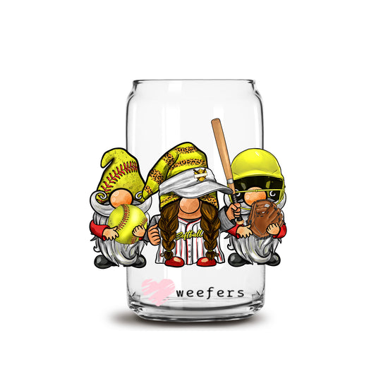 Softball Gnomes 16oz Libbey Glass Can UV DTF or Sublimation Cup Wrap - Decal Transfer