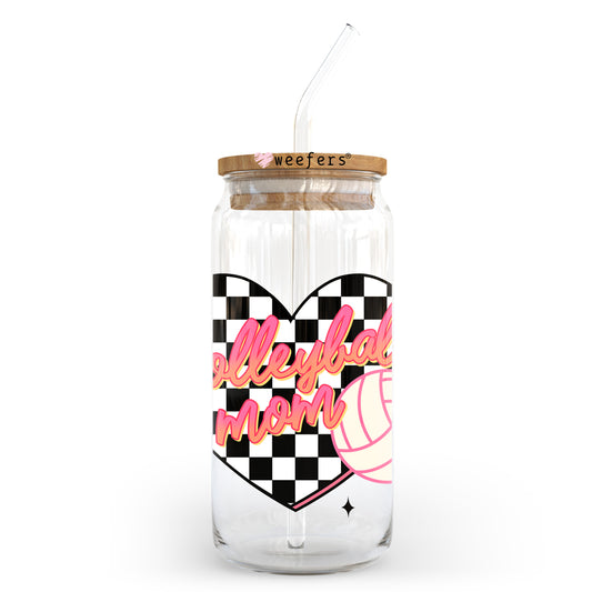 Volleyball Mom Heart Checkered 20oz Libbey Glass Can, 34oz Hip Sip, 40oz Tumbler, 24oz Cold Cup UV DTF or Sublimation Decal Transfer