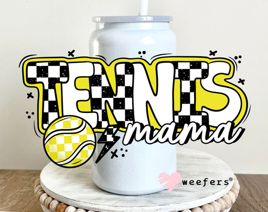 Tennis Mama Yellow Black Checkered UV DTF Cup Wrap