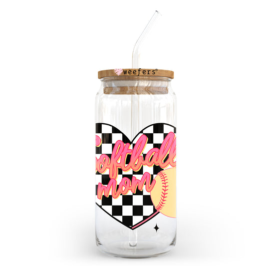 Softball Mom Heart Checkered 20oz Libbey Glass Can, 34oz Hip Sip, 40oz Tumbler, 24oz Cold Cup UV DTF or Sublimation Decal Transfer