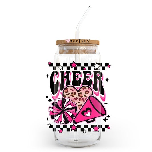 Cheer Hot Pink and Black 20oz Libbey Glass Can UV DTF or Sublimation Wrap - Decal Transfer