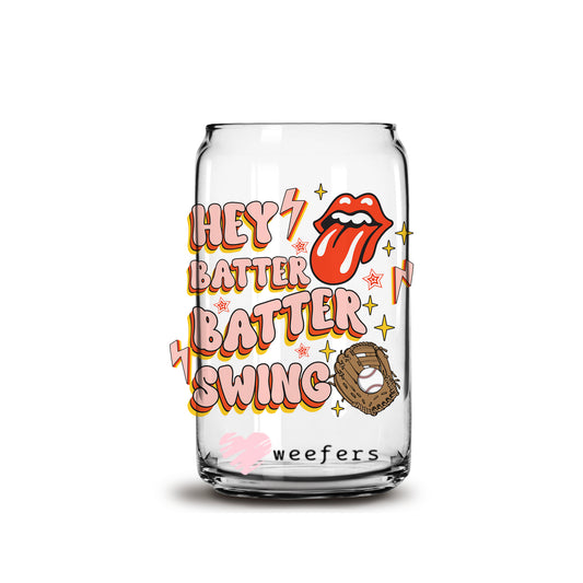 Hey Batter Batter Swing 16oz Libbey Glass Can UV DTF or Sublimation Cup Wrap - Decal Transfer