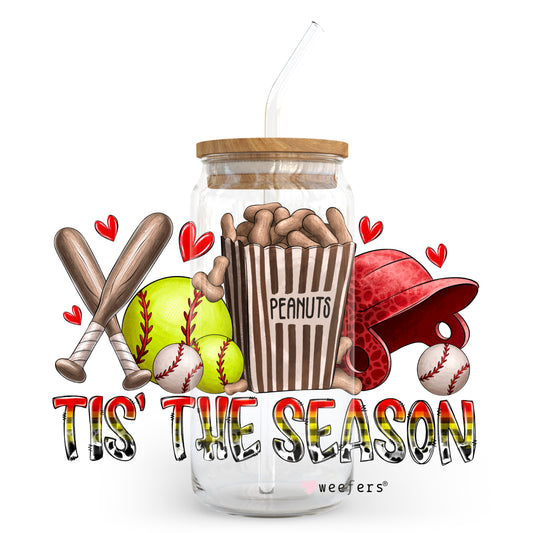 Tis the Season Softball 20oz Libbey Glass Can, 34oz Hip Sip, 40oz Tumbler UV DTF or Sublimation Decal Transfer