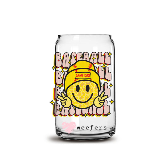 Baseball Game Day Smile Face 16oz Libbey Glass Can UV DTF or Sublimation Cup Wrap - Decal Transfer