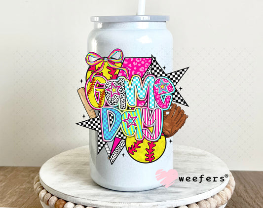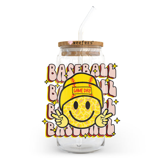 Baseball Gameday Smile Face 20oz Libbey Glass Can UV DTF or Sublimation Wrap - Decal Transfer