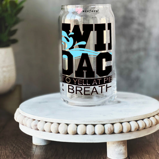 Swim Coach Paid To Yell At People For Breathing 16oz Libbey Glass Can UV DTF or Sublimation Wrap - Decal Transfers