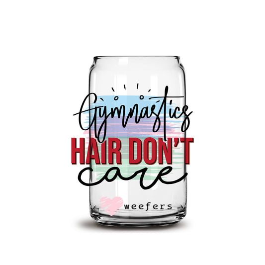 Gymnastics Hair Don't Care 16oz Libbey Glass Can UV DTF or Sublimation Wrap - Decal