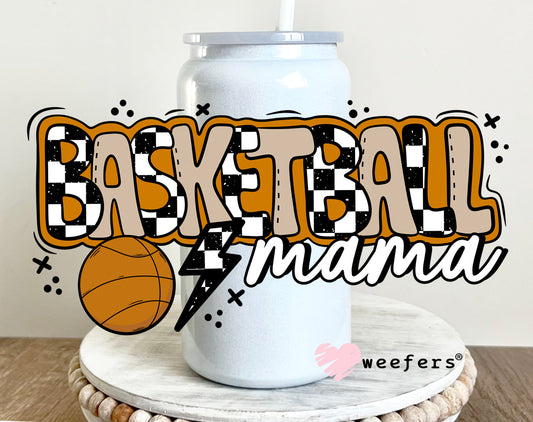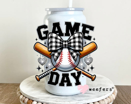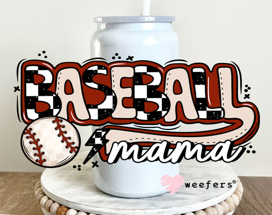 Baseball mama Checkered 20oz Libbey Glass Can UV DTF or Sublimation Wrap - Decal Transfer