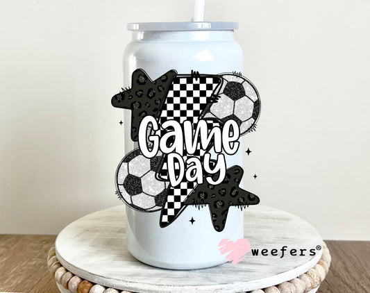 Game Day Soccer Black Checkered Lightening Bolts UV DTF Decal