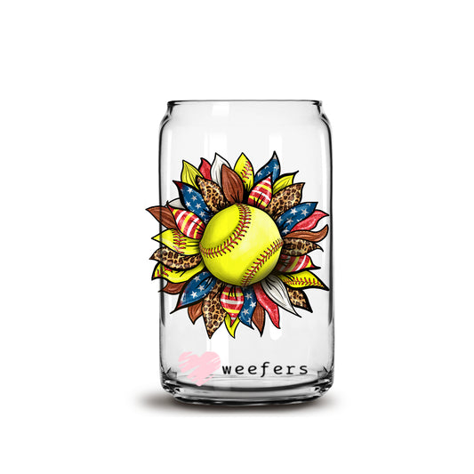 Sunflower Softball 16oz Libbey Glass Can UV DTF or Sublimation Wrap - Decal