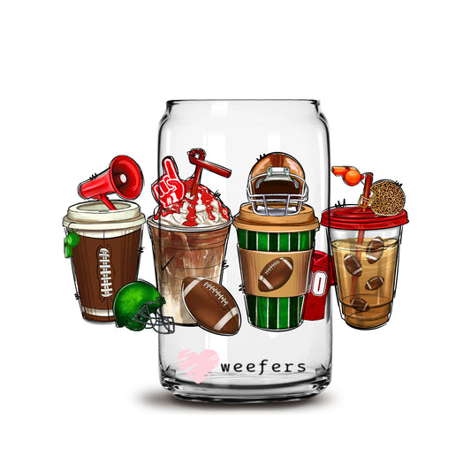 Football Coffee Latte 16oz Libbey Glass Can UV DTF or Sublimation Wrap - Decal