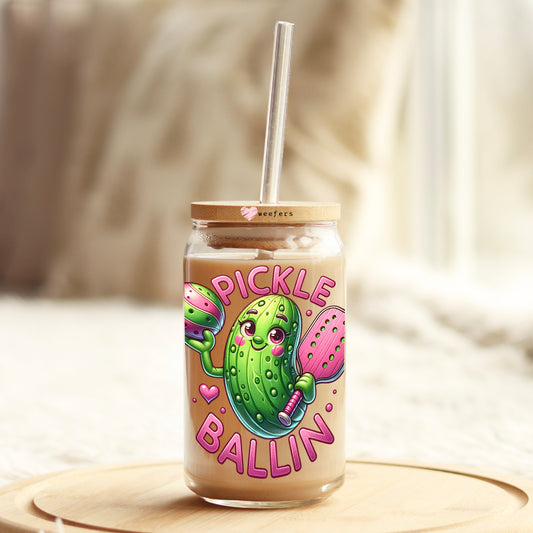 Pickle Ballin Pink Pickle 16oz Libbey Glass Can UV DTF or Sublimation Wrap Decal Transfer