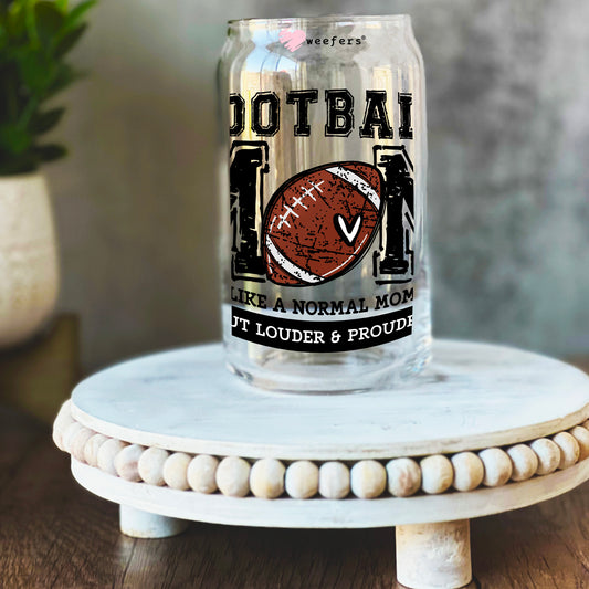 Football Mom Like a Normal Mom but Louder and Prouder 16oz Libbey Glass Can UV DTF Decal Transfer