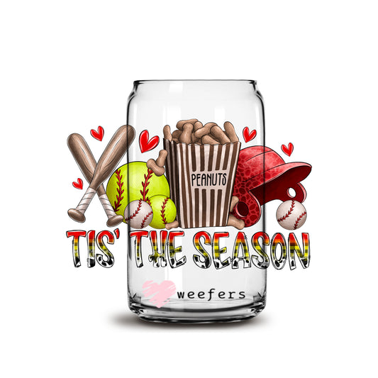 Tis The Season Softball Libbey Glass Can UV DTF or Sublimation Wrap - Decal