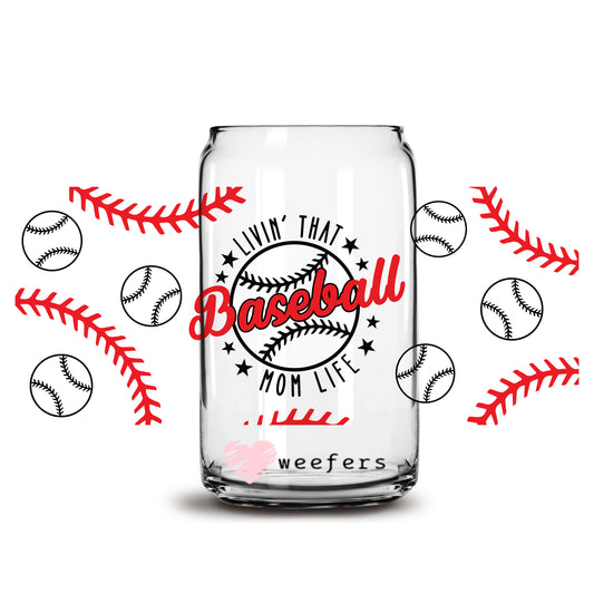 Livin' that Baseball Mom Life 16oz Libbey Glass Can UV DTF or Sublimation Wrap - Decal