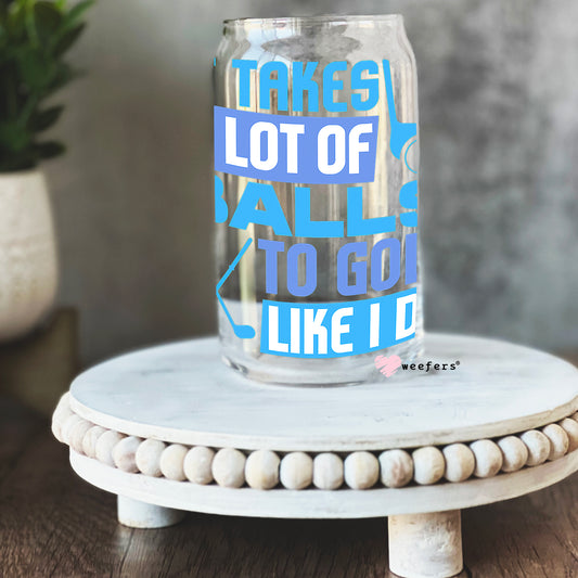 It Takes a Lot of Balls to Golf Like I Do 16oz Libbey Glass Can UV DTF or Sublimation Wrap - Decal