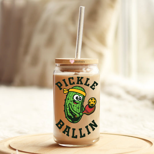 Pickle Ballin Green Pickle 16oz Libbey Glass Can UV DTF or Sublimation Wrap Decal Transfer