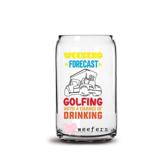 Weekend Forecast Golfing with a Chance of Drinking 16oz Libbey Glass Can UV DTF or Sublimation Wrap - Decal