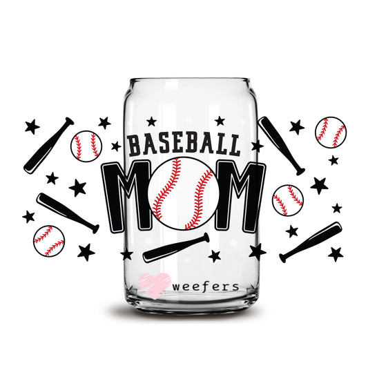 Baseball Mom Bats and Balls 16oz Libbey Glass Can UV DTF or Sublimation Wrap - Decal
