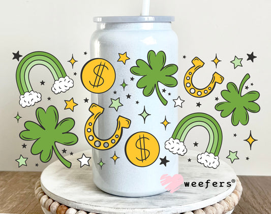 Lucky Horseshoe St. Patrick's Day Print 16oz Libbey Glass Can UV DTF or Sublimation Cup Wrap - Decal Transfer