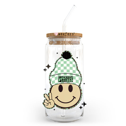 Smile Face St. Patrick's Day 20oz Libbey Glass Can UV DTF or Sublimation Wrap - Decal Transfer