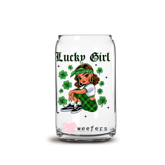 Lucky Girl 16oz Libbey Glass Can UV DTF or Sublimation Cup Wrap - Decal Transfer