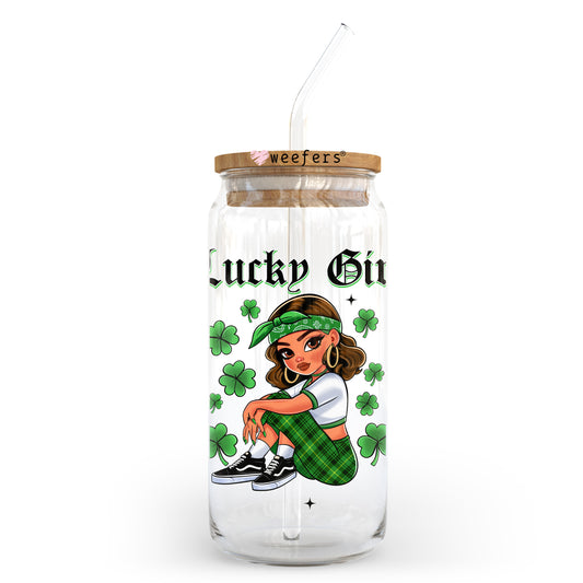 Lucky Girl St. Patrick's Day 20oz Libbey Glass Can UV DTF or Sublimation Wrap - Decal Transfer