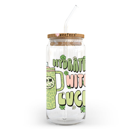 Hydrated with Luck St. Patrick's Day 20oz Libbey Glass Can UV DTF or Sublimation Wrap - Decal Transfer